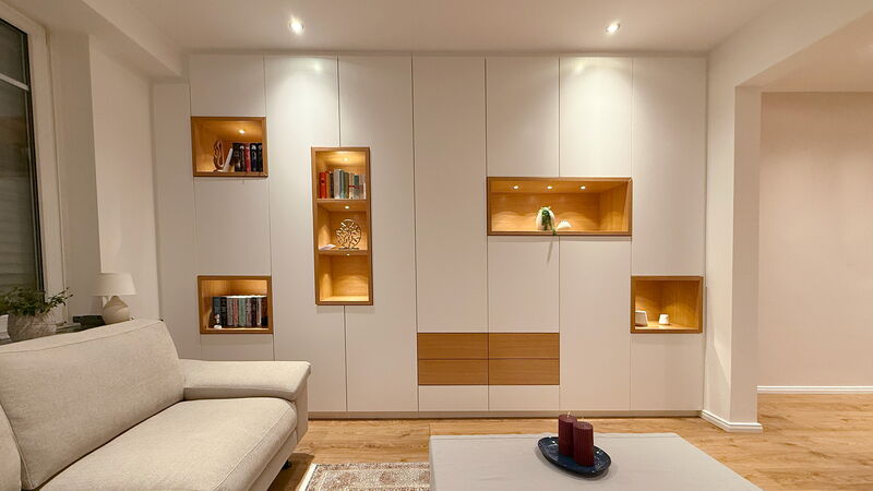 Ob für das Wohn oder Schlafzimmer, das Büro oder den Flur – unsere Einbauschränke verbinden höchste Funktionalität mit ästhetischem Design. Wir hören zu, verstehen Ihre Wünsche und setzen diese in höchster Qualität um.