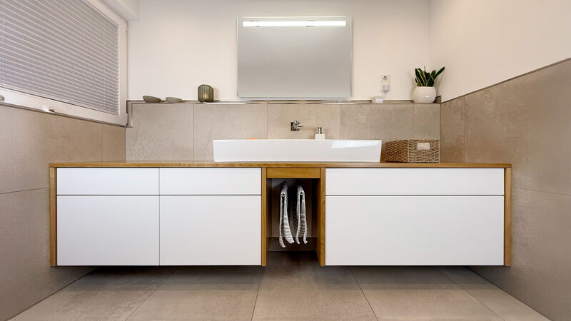Das Badezimmer ist mehr als ein funktionaler Raum – es ist Ihr privater Rückzugsort, ein Ort der Entspannung und Erholung. Hier möchten Sie den Alltag hinter sich lassen, neue Energie tanken und einfach genießen. Selbst auf kleinem Raum kann ein Hauch von Wellness Einzug halten. Mit warmen Materialien und maßgeschneiderter Gestaltung verwandeln wir Ihr Bad in einen Ort, der all Ihre Wünsche erfüllt. Lassen Sie uns gemeinsam Ihre Wohlfühloase schaffen – individuell, gemütlich und perfekt auf Sie abgestimmt.
